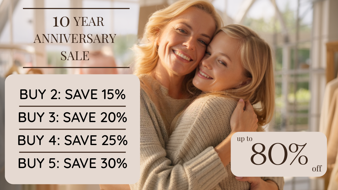 Discounts apply automatically at checkout. Mix and match any items from our Anniversary Sale collections